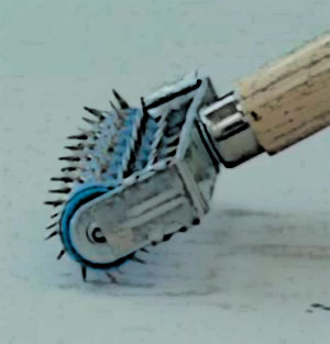 - نصنع ثقوبًا على المواد باستخدام بكرة إبرة ، ويمكن شراؤها مجانًا في البيع بالتجزئة ؛