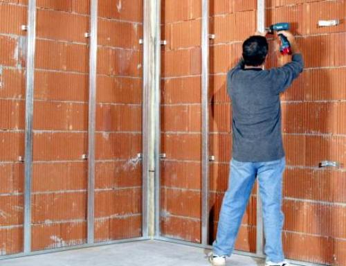 تبدأ مواجهة الجدران مع الحوائط الجافة على إطار معدني بتصنيع الإطار نفسه على السطح.