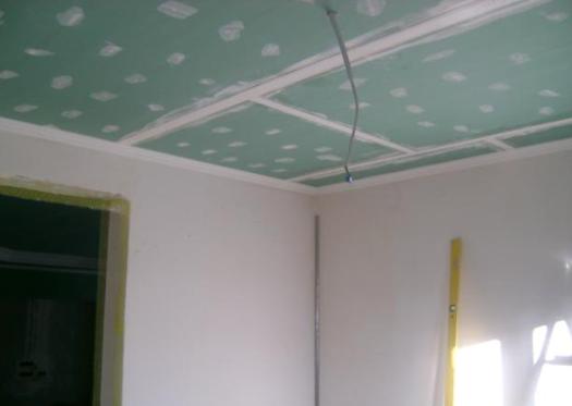 بالإضافة إلى ذلك. قبل وضع السقف من الحوائط الجافة ، تحتاج إلى التأكد من أن البراغي لا تبرز خارج مستوى الأوراق ، وأن جميع اللحامات مطرزة.