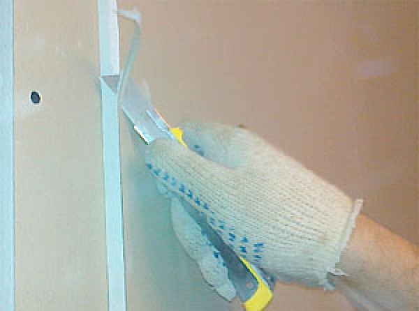 - إذا تم تشكيل اللحامات بين الأوراق بواسطة حواف المصنع ، فلا يلزم فعل شيء معها بعد. إذا كانت هذه هي المفاصل بين النهاية أو الحواف المشذبة ، يجب توسيعها قبل المعجون - تقطع بسكين طلاء بزاوية 45 درجة.