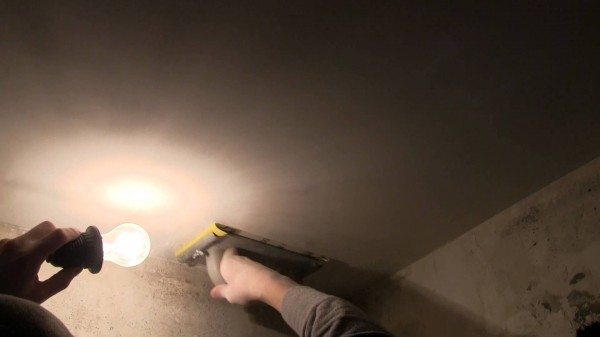 المعجون بهذه الطريقة على السطح بالكامل ، امنح المعجون الوقت حتى يجف ، ثم تابع الانتهاء من التشطيب. هنا ستحتاج إلى ضوء كشاف أو مصباح يدوي مشرق. من خلال توجيه شعاعه بالتسلسل إلى السقف بزاوية طفيفة ، افحص السطح بعناية.