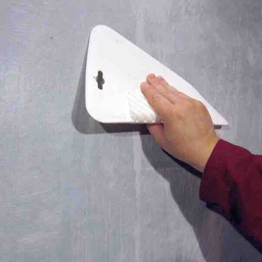 - يتم تطبيق الحل مع ملعقة على العيب والضغط على الداخل بحيث يملأ جميع الفراغات. إزالة الفائض على الفور مع الجدار ؛
