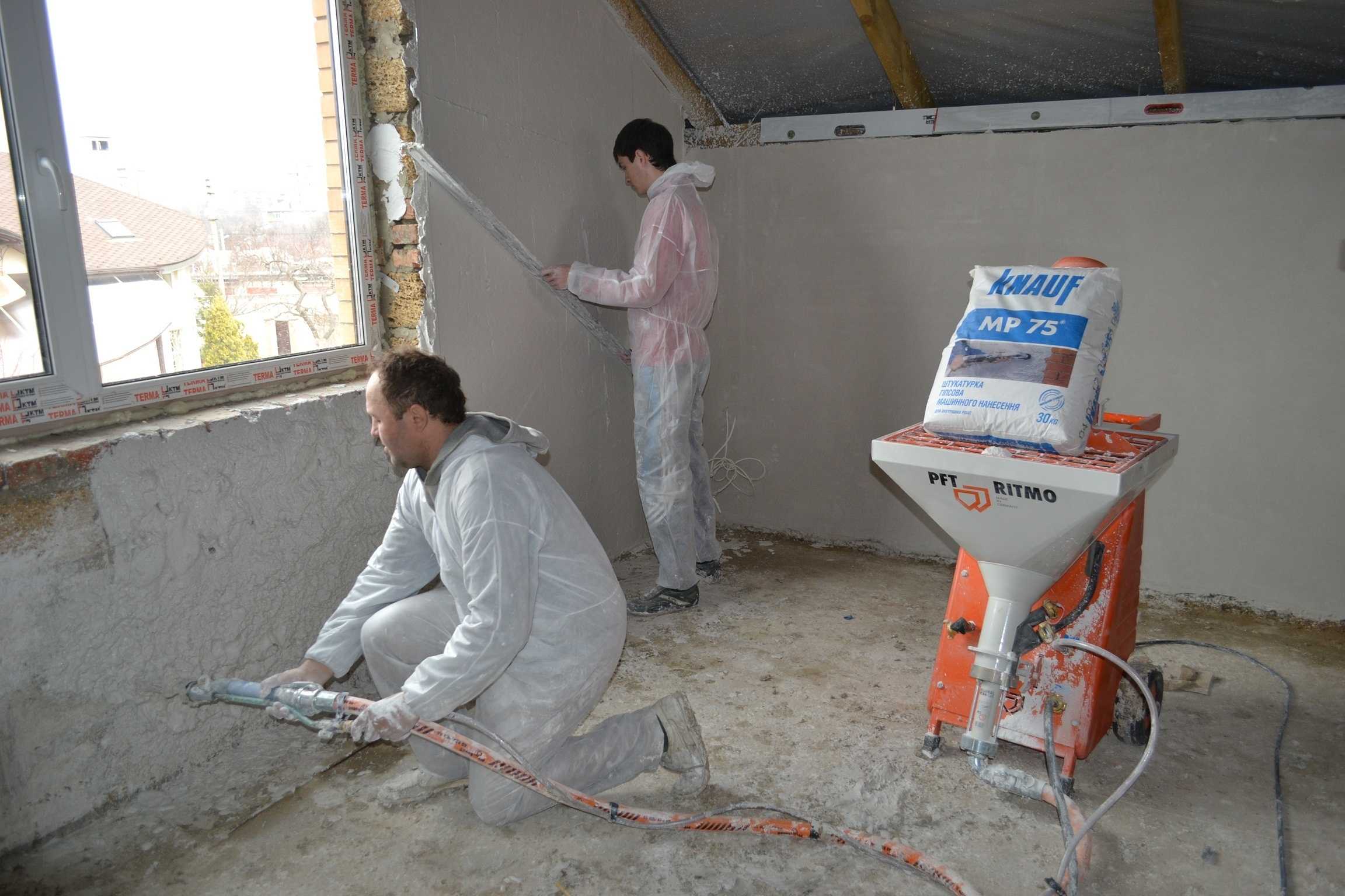 - إذا لم يكن للجدران أو السقف انحرافات كبيرة عن مستوى واحد ، فهذا يكفي لوضع الشقوق والأحواض الصغيرة على السطح ، ثم تطبيق طبقة رقيقة من طبقة واحدة من الجص.