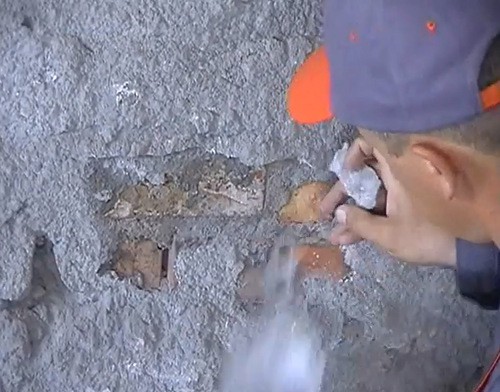 كما هو الحال مع أي تشطيب "رطب" آخر ، يتم تحضير السطح أولاً: يتم النقر عليه لإزالة مناطق الانهيار ، وقطع جميع النتوءات (تدفق الملاط ، التعزيز البارز ، الحصى) ، تنظيف الأوساخ وآثار الدهون.