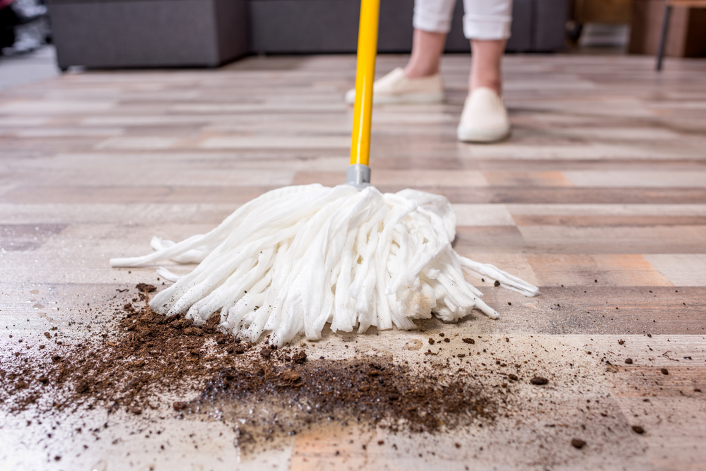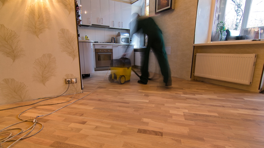 - جفف سطح الأرضية بقطعة قماش جافة.