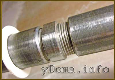 - يتم شراء قطعتين من الأنابيب المعدنية بقطر 28x3 ، بطول 50 سم. في نهاياتها ، تصنع الرؤوس المدببة بملف مثلث ، حيث تتواجد العناصر على الجدران ، وتزيد من قوة الهيكل. تم قطع خيط داخل كل أنبوب: واحد على اليسار والآخر على اليمين.
