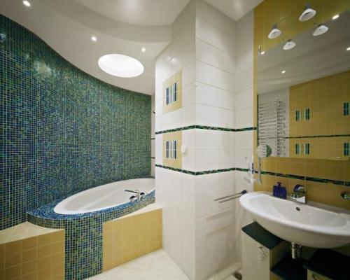 الآن يمكنك المتابعة إلى الزخرفة الزخرفية للسقف. في الحمام ، يتم طلاء الأسقف بشكل رئيسي بمواد مقاومة للرطوبة ، على أي حال ، يتم تحويل الغرفة.