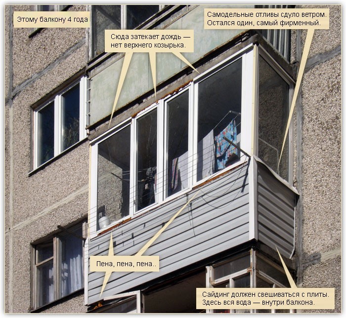 Pointe. Le revêtement extérieur des balcons ou loggias ne peut être réalisé qu'après un vitrage complet de la structure.
