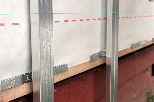 - Под такова покритие можете да скриете несъвършенствата на стените. Към грубата повърхност е прикрепена профилна рамка. Едновременно с инсталирането на рамката можете да монтирате окабеляването. Цялата конструкция е закрепена с самонарезни винтове, те се монтират с стъпка от 30 см. Фугите между листовете и главите на самонарезните винтове са покрити с замазка. При необходимост се извършва допълнително импрегниране на цялата повърхност.