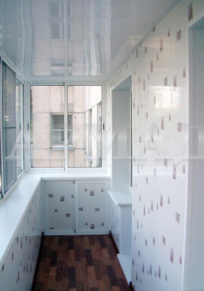 Декорирането на лоджии с PVC панели е много популярно. Лоджията с този завършващ материал изглежда много спретнато.