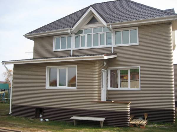 Ако всичко е направено правилно, фасадата на къщата със сигурност ще зарадва обитателите й, както и минувачите, с интересния си външен вид. Освен това, облицовката с професионален лист перфектно се комбинира с други видове довършителни материали и витражи. Широката гама от нюанси на полимерни покрития прави възможно създаването на дизайн за почти всеки вкус.