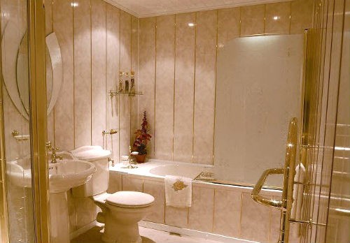 - Банята може да бъде облицована с pvc панели и всяка друга стая. Те перфектно понасят висока влажност и температурни крайности;