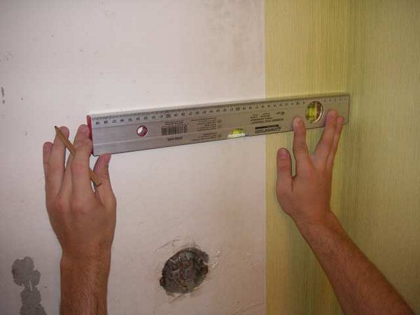 - На първо място, близо до тавана се очертава права линия. Тук ще бъде необходимо да се приложи строителното ниво.