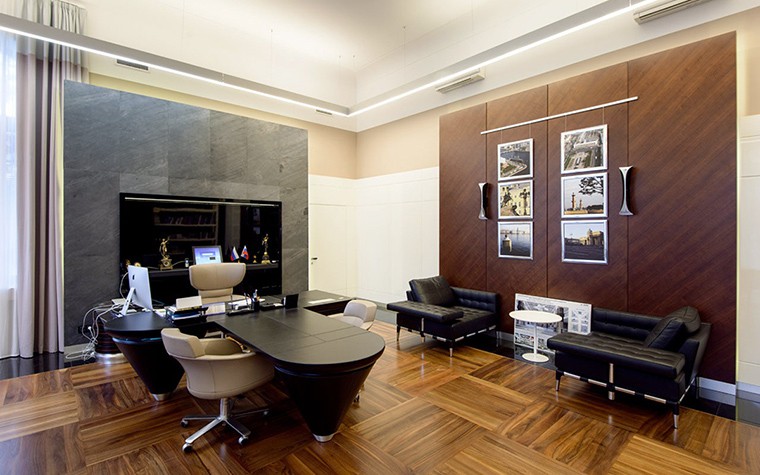 - Изпълнителни офиси, с изключение на директора, заседателна зала. В този случай трябва да използвате услугите на дизайнер, така че цветовете на интериора да се хармонизират с тапета възможно най-много.