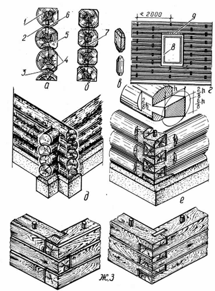 Те представляват структура от трупи, греди или плочи, подредени във височина една върху друга, които в пресечната точка и в ъглите са свързани с прорези.