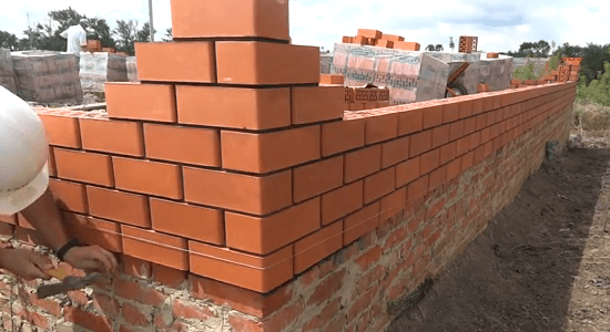 - Дебелината на стената се избира предварително. Тя може да бъде: 12, 25, 38, 51 сантиметър, което съответства на размера на тухлата: 0,5; 1; 1.5; 2 блокови дължини.