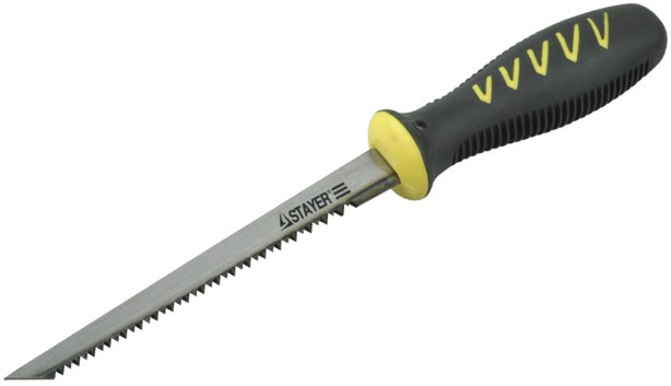 | Показаната на снимката ножовка може да отреже много други материали. Тясното острие, заострено в края, е идеално за изрязване на малки дупки и разрези в лист по извита линия. Такава ножовка ще замени мозайката. | |