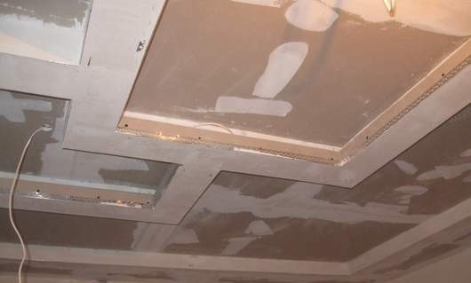 Съвет: При довършване на повърхността тези шевове трябва да бъдат залепени с подсилваща мрежа от сърп. Това ще предотврати напукване на шевовете на тавана в бъдеще.