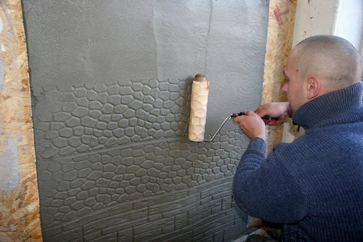 - Декоративното шпакловане с валяк е най-лесният и най-често срещаният начин. Всичко, което се изисква от вас, е да закупите специален валяк с релефна повърхност и да преобърнете стена върху прясна замазка. Това трябва да стане с леко равномерно налягане, без да се разкъсва инструмента от стената.