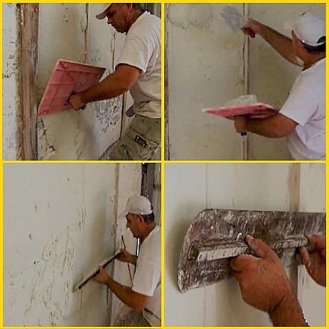 - Сместа се нанася върху малка част от стената, която е свързана с бързото втвърдяване на гипсовия състав и трябва да бъде подпечатана с полиуретанов печат, докато накрая не се втвърди.