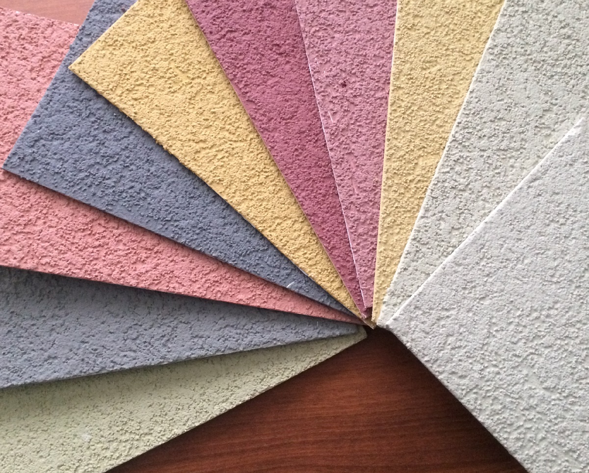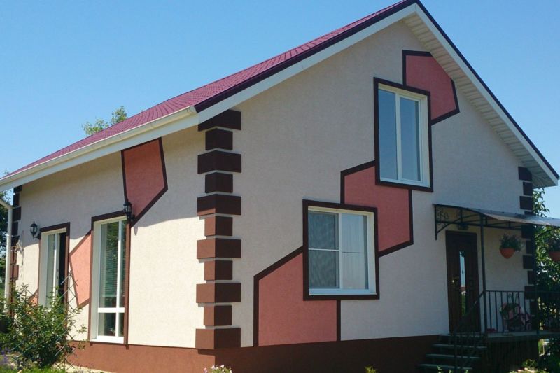Мазилки, готови за външна декорация, създават необичайна текстура на повърхността. Популярни средства за защита са „кора бръмбар“, „камъчета“ и „козина“. Ако беше използван бял материал, тогава след втвърдяване повърхността е боядисана във всеки цвят.