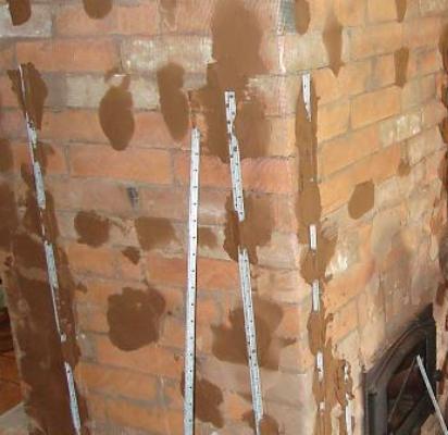- За да може покритието да се окаже гладко и без разлики, преди да измажете печката от тухла, трябва да фиксирате маяците върху нея, както е показано на снимката в началото на тази статия. Те служат за гарантиране, че инструментът, с който се нанася сместа, не изтласква повърхността повече от необходимото.
