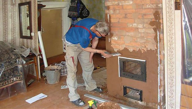 - Както всяка ремонтна или довършителна работа, мазилката трябва да започне с подготовката на пещта и нейната повърхност. Това е особено важно, ако печката е наскоро сгъната и това е нейният първи завършек. В този случай е необходимо пълно изсушаване. При естествени условия може да продължи няколко месеца, така че можете да ускорите процеса и леко да разтопите пещта.