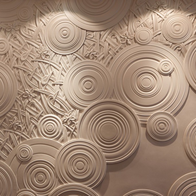 - По принцип за нанасяне на абстрактен релеф върху пластмасова замазка могат да се използват всякакви импровизирани предмети: мрежеста кърпа, гъба с големи пори, четка за боя или метална четка. Ако искате повърхността да не е абстрактно облекчение, а ясен орнамент, ще трябва да закупите специален инструмент: фигурен валяк или силиконов печат.
