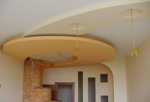 - Издръжлив, тъй като много често можете да намерите таван от гипсокартон с голям таван или няколко декоративни осветителни тела.