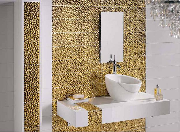 За визуално разширяване на пространството, в малка баня една стена може да бъде направена от такова покритие. Това ще даде усещане за простор.