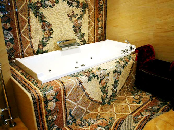- Довършването на банята с фини мозайки дава много повече възможности за създаване на оригинален интериор.