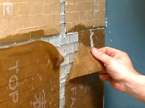 - След като завършите реда, лепилото трябва да се остави да хване - двадесет минути ще са достатъчни. След това трябва да премахнете защитния слой хартия, като го навлажните с мокра гъба.