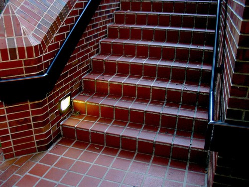 Pointe. Pour une plus grande adhérence du mortier de béton avec la surface de l'escalier, il est nécessaire de faire de petits trous dans le béton avec un marteau. La solution qui sera utilisée pour l'installation de carreaux de béton fixera de manière fiable le matériau de cette manière.