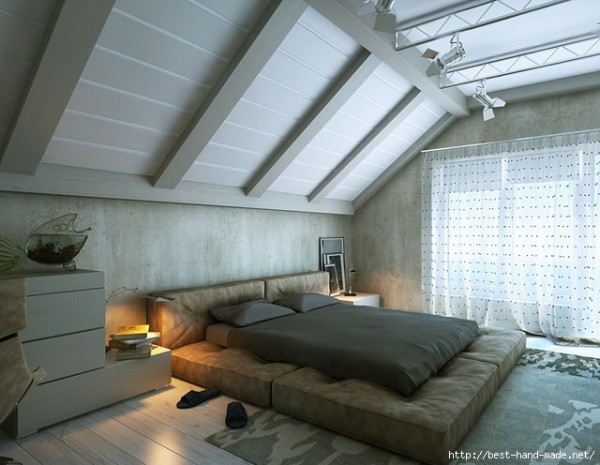 Le grenier doit être conçu même au stade de la conception d'une maison, sinon je me suis demandé avec l'idée de faire un grenier résidentiel dans une maison à un étage en briques finies. Une étude détaillée a montré que les poutres horizontales du toit sont trop basses, presque sur la poitrine et le sol, ou plutôt, le plafond est trop fragile et se plie lors de la marche. En général, vous ne pouvez faire de grenier résidentiel nulle part.