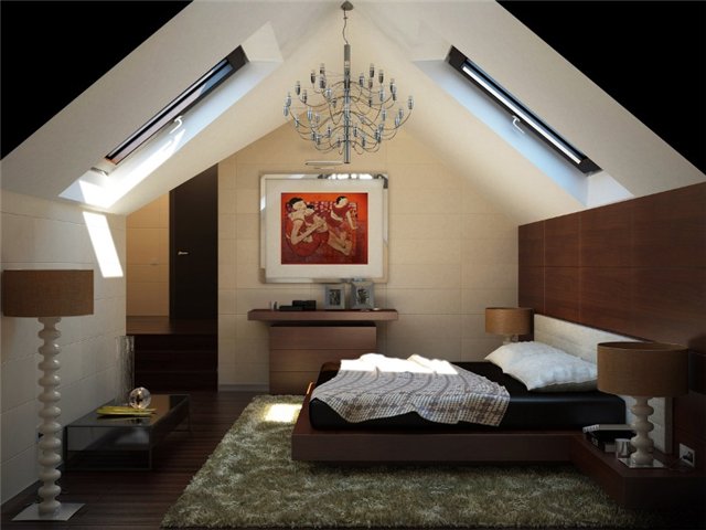Cela contribue à un bon éclairage naturel du grenier. - Toutes les chambres mansardées n'ont pas assez de fenêtres. Si les fenêtres ne sont pas prévues dans les pentes du toit, et qu'il n'y a que de petites fenêtres sur les murs du fronton, en termes d'éclairage, vous devez vous fier davantage aux dispositifs d'éclairage.