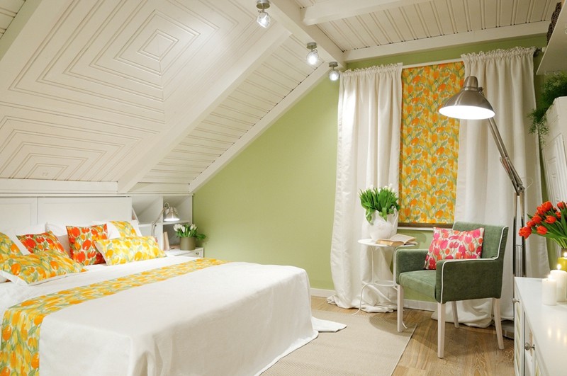 - En utilisant la doublure comme matériau de finition, il est possible de zoner le grenier en colorant chaque zone de sa propre couleur. L'image ci-dessus est un très bon exemple d'une telle solution intérieure.