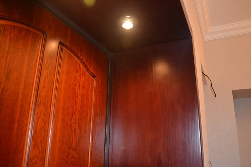 Diese Art der Dekoration ist auch gut, weil für die Bequemlichkeit der Bewohner des Hauses Scheinwerfer in das Gehäuse eingebaut werden können.