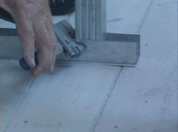 Wir bekommen eine Markierung auf dem Boden, indem wir die gegenüberliegenden Linien verbinden. Die resultierende Ebene entspricht vollständig der Ebene des Fensters. - Als nächstes befestigen wir unser Profil entlang der geplanten Linien um den gesamten Umfang. Die Montage erfolgt wie folgt.