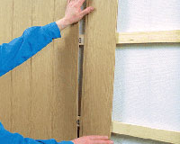 Das erste MDF-Paneel an der Wand ist immer eben. Die Paneele werden mit selbstschneidenden Schrauben befestigt.