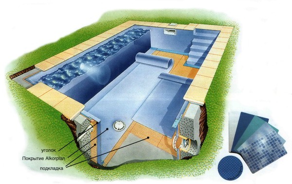 Der Boden des Pools und seine Wände können mit jeder Größe dieses Materials ausgeführt werden.