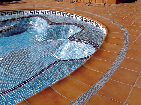 Trinkgeld. Die Auskleidung der Poolschale erfolgt immer nur mit Fliesen mit rauer Oberfläche, da diese nicht verrutscht.