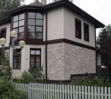 Angesichts des Untergrunds von Fassaden mit zerrissenem Stein, Fassaden vollständig oder mit Fragmenten, hat die Priorität von Designphantasien auf einer gesichtslosen Oberfläche bisher Priorität. Am häufigsten wird eine Kombination einer bestimmten Anzahl von Farben desselben Materials verwendet.