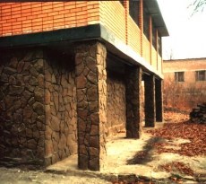 Natürlich gibt es seltene Rassen von Granit, Marmor und anderen Mineralien, aber Sie können ein ziemlich billiges Material finden. - Die Verkleidung von Fassaden und Sockeln kann durch fragmentierten Sandstein mit terrakottaroter Farbe erfolgen. Als Referenz können Sie interessante Informationen mitbringen.