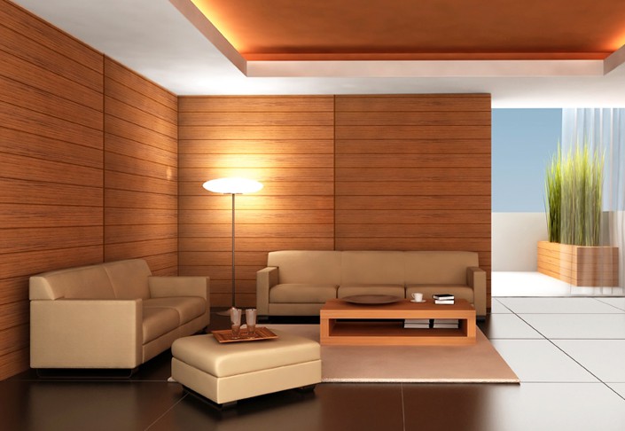 Raumdekoration Holzmaserung kann in verschiedenen Stilrichtungen verwendet werden.