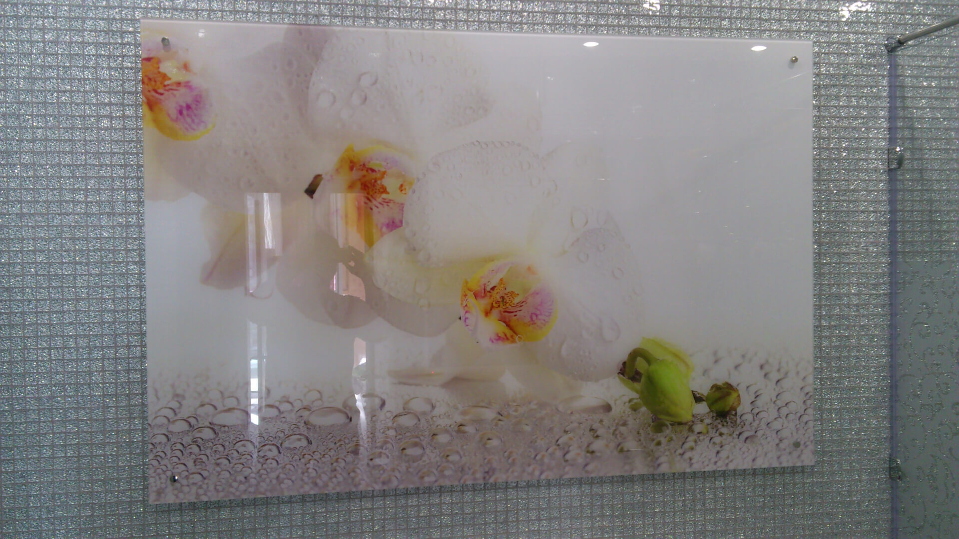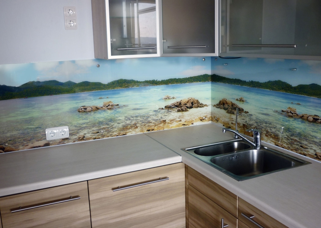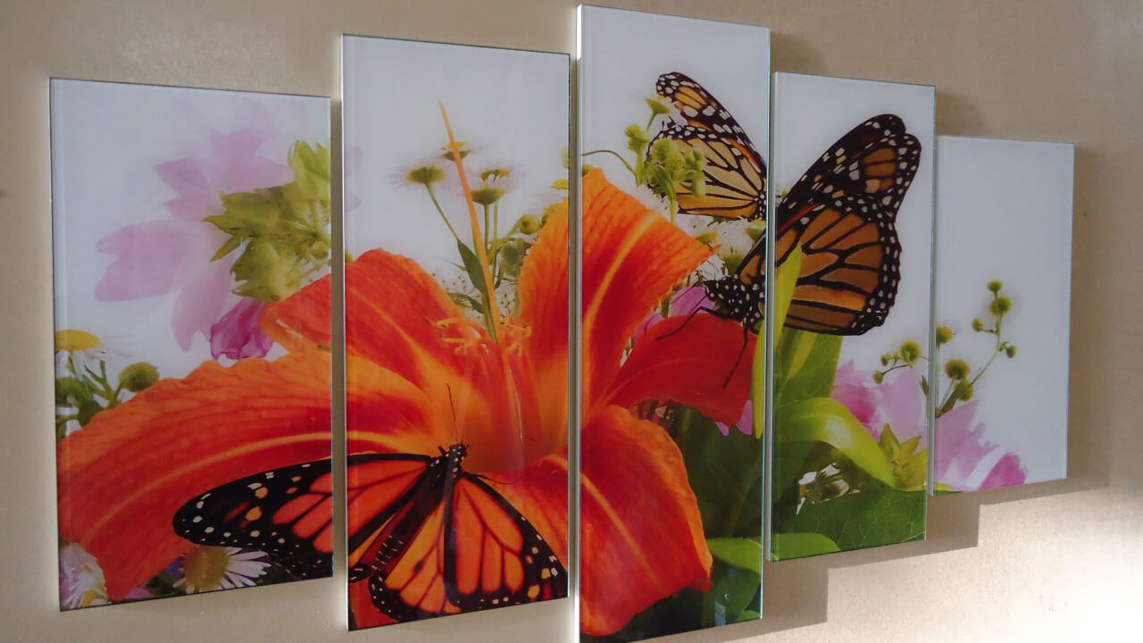 Unter dem Strich platzieren Sie das von Ihnen gewählte Bild oder Foto zwischen den beiden Gläsern. Die Herstellungstechnologie bis an die Grenzen ist einfach: Wir reinigen das Glas von Verunreinigungen, platzieren das ausgewählte Bild dazwischen und kleben die Kanten mit einem speziellen farblosen Kleber. Alles, Fotopanel an der Glaswand, ist fertig.