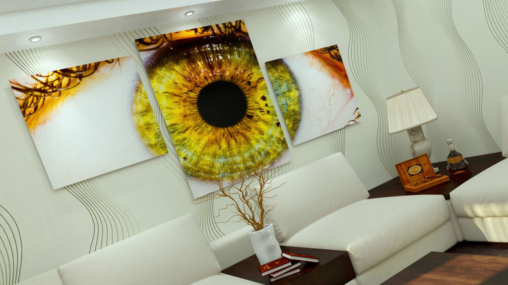 Eine weitere interessante Lösung für die Kreativität zu Hause sind modulare Triplex-Gemälde. Die Technologie ist dieselbe, nur das Bild wird nicht auf ein Glas, sondern auf mehrere Segmente unterschiedlicher Größe angewendet.