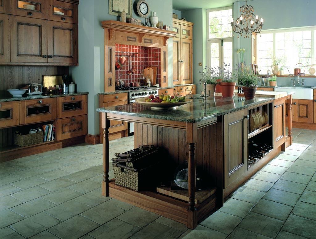 Leider hat nicht jeder die Möglichkeit, zu Hause einen Kamin zu bauen, und in einer Wohnung ist dies völlig unmöglich. Natürlich können Sie es durch Nachahmung ersetzen oder elektrische Kamine verwenden, wenn sich eine solche Gelegenheit ergibt. Die Wände einer Küche im Landhausstil mit Kamin oder Herd sind sofort plus hundert Punkte, um die Atmosphäre eines amerikanischen Dorfes zu vermitteln.
