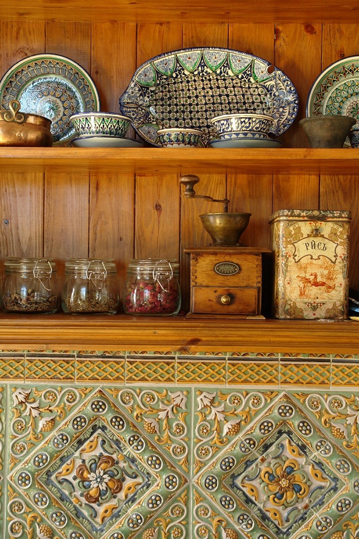 In dieser Situation können es Vasen, Wandpaneele, Teller mit Früchten und Teller sein, die an die Wand gemalt sind. Die Hauptsache ist, dass dies nicht aus dem allgemeinen Konzept herauskommt, und natürlich gefällt es Ihnen als Eigentümer eines renovierten Hauses im Stil einer echten amerikanischen Farm.