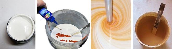 Aber wenn die Möglichkeit des automatischen Mischens von Farbe mit Pigment nicht besteht, spielt es keine Rolle. Dies kann unabhängig voneinander erfolgen, indem der Masse Farbe hinzugefügt und diese schrittweise und gründlich gemischt werden. Die Hauptsache ist, sofort das gesamte Volumen zu tönen, das zum Streichen der Decke erforderlich ist, da es kaum möglich ist, das Ergebnis manuell genau zu wiederholen.
