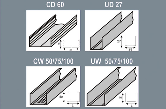 - Für Gipskartonwände mit einer Dicke von 5; 7,5 oder 10 Zentimeter, W. Profil angewendet.